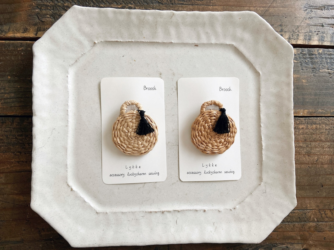 繊細に編み糸を織り上げたシンプルですが存在感があるブローチ。