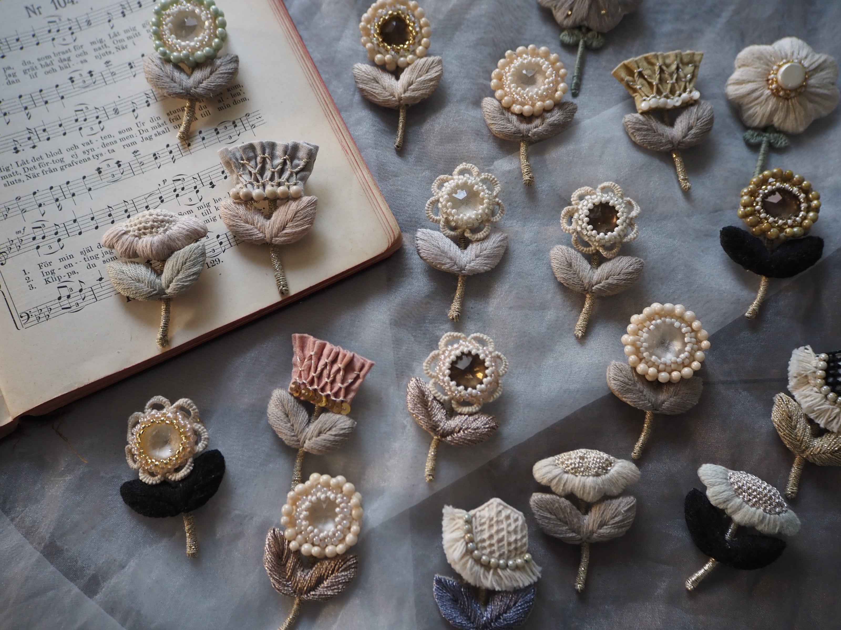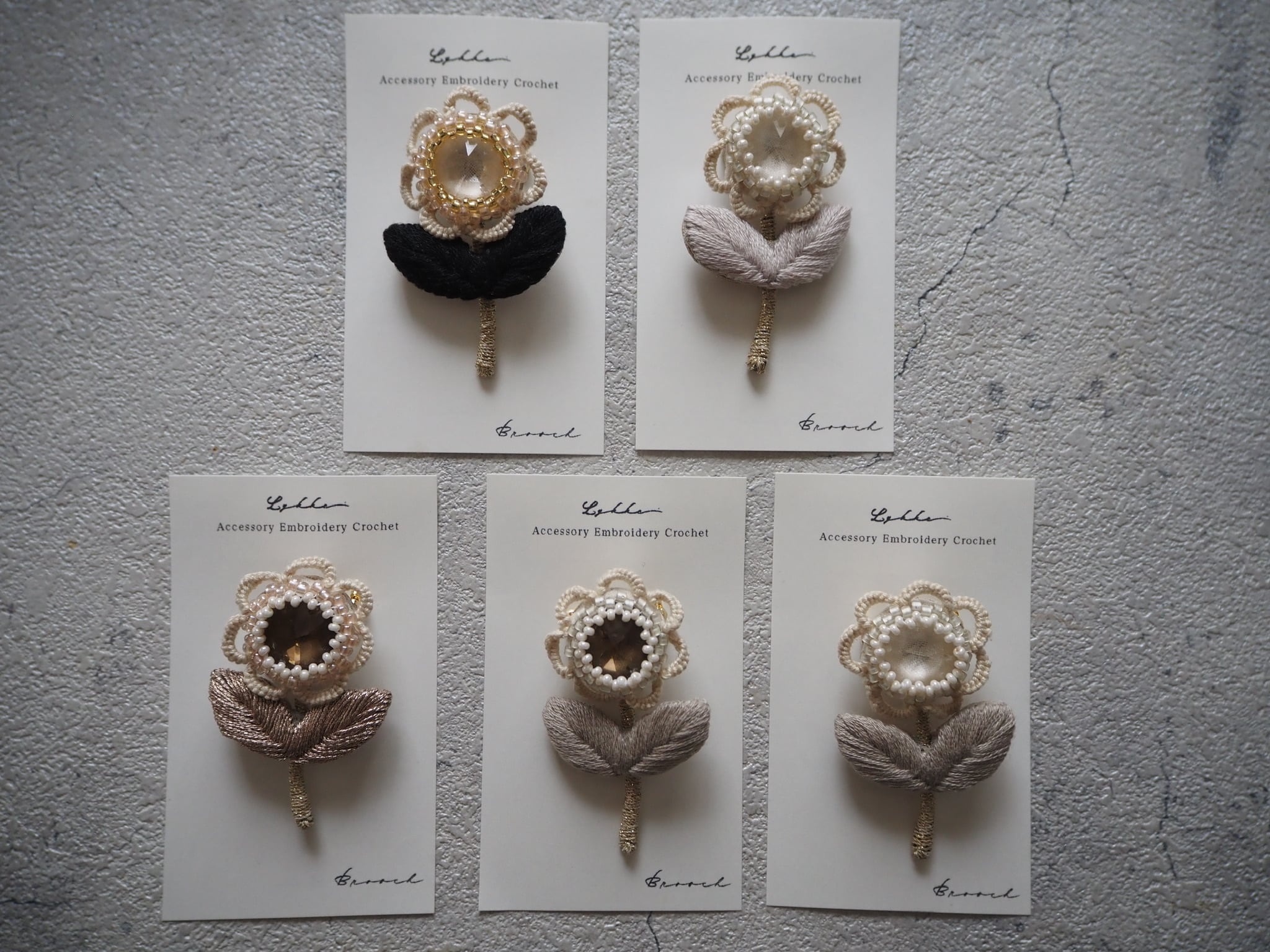 刺繍ブローチ はなびら スワロ