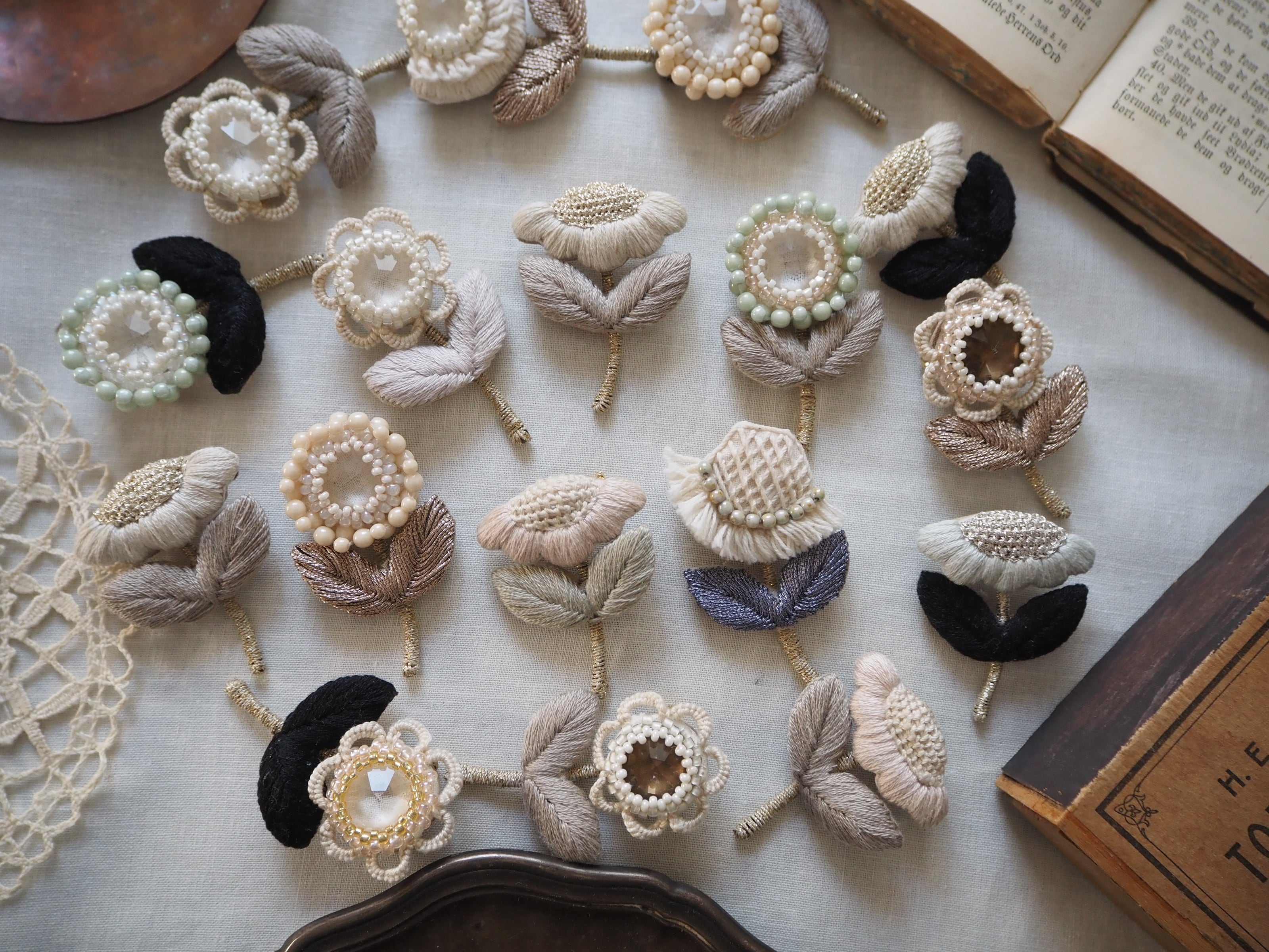 既存のまあるいお花ブローチより少しだけ小さめになります